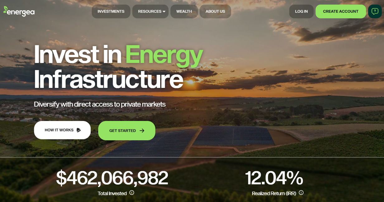 Energea is a renewable energy crowdfunding platform allowing investors to purchase equity stakes in portfolios of operating solar projects across the USA, Brazil, and Africa. Investors buy LLC membership interests through SEC Reg CF or Reg A+ offerings ($100 minimums, open to non-accredited investors). Projects generate revenue from selling electricity under long-term contracts (PPAs); investors receive monthly distributions from cash flows plus potential equity appreciation upon project sales or refinancings. Target returns are typically described as 11-14% IRR depending on geography. There is a 3-year minimum holding period, and redemptions are considered at the platform’s discretion thereafter—no guaranteed liquidity or secondary market.