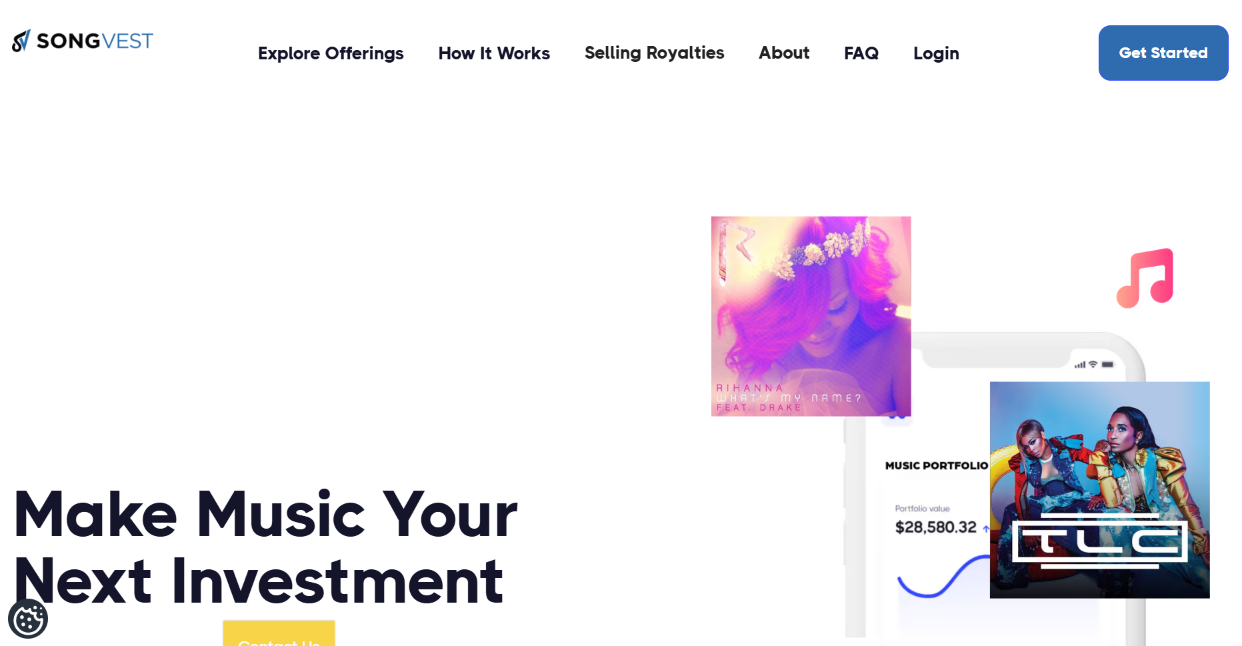 Fractional music royalty securities platform. SongVest sources royalty interests from rights-holders, structures them as SEC-qualified Regulation A offerings called SongShares, and facilitates fractional investment through pre-offering auction mechanics and public sales. Each SongShare represents contractual rights to receive pro-rata distributions from disclosed royalty revenue streams (e.g., streaming, performance, mechanical, sync where applicable) net of disclosed platform fees. SongVest administers collection, quarterly distribution processing (timing varies by source and reporting cycle), and investor reporting per the offering documents.